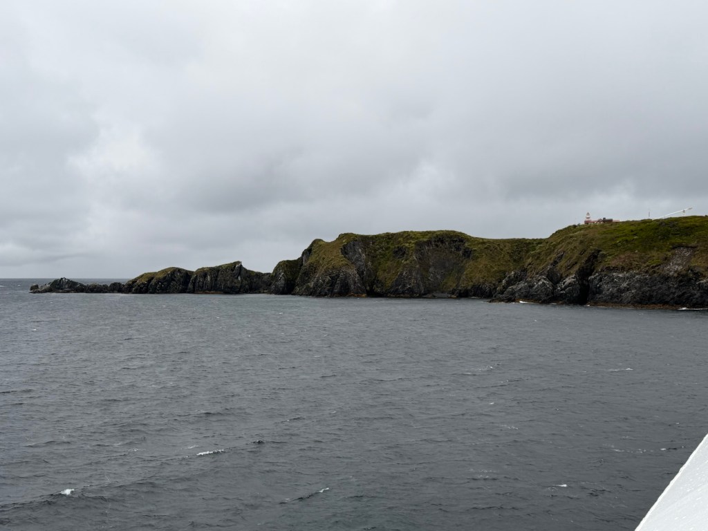 Cape Horn actually is an island that sits in a large bay with a number of other rocky uninhabited islands. Anyway, after a while the ship rotated 360 degrees and then we spent the morning sailing around the islands and up and down the bay until the pilot boat showed up to take our two pilots on shore. Someone on the ship reported they saw two people get off with luggage which makes sense as they were Magellan pilots, meaning they were the pilots responsible for navigating us through the Straits of Magellan as well as the Beagle Channel, so likely they had been on a few days.
